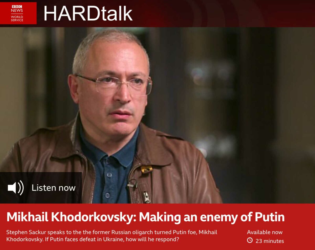 Speaking to Hardtalk’s (link) Stephen Sackur Mikhail Khodorkovsky, the dissident …