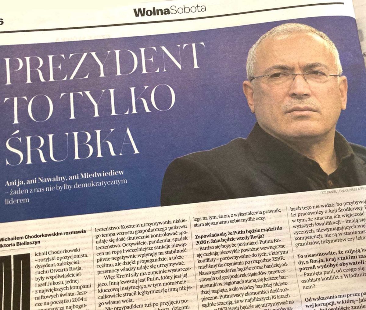 Mikhail Khodorkovsky spoke to Gazeta Wyborcza, biggest Polish non-tabloid daily. …